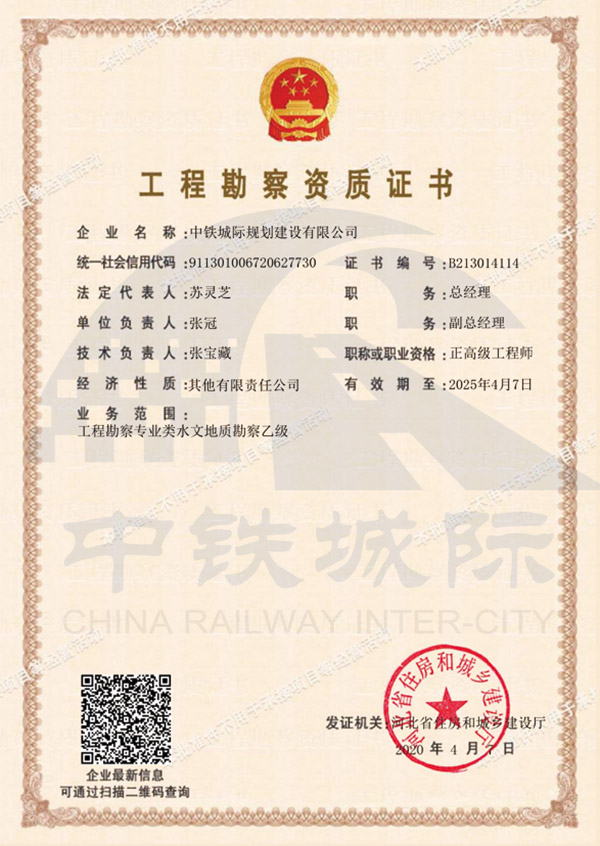 • 工程勘察專業(yè)類(水文地質(zhì)勘察)乙級(jí)