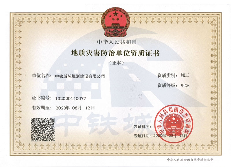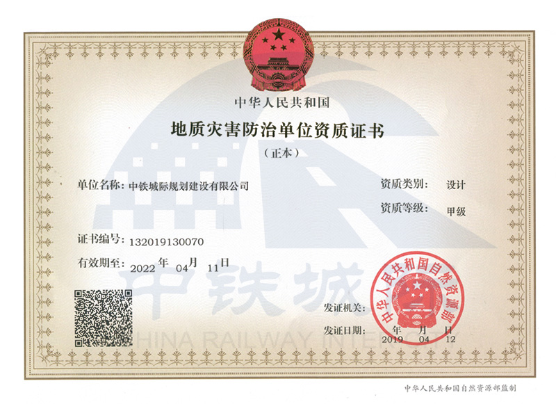 • 地質(zhì)災(zāi)害防治設(shè)計(jì)甲級(jí)資質(zhì)