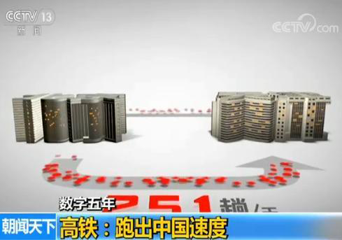 在北京和天津之間,每天往返的高鐵有251趟,平均10多分鐘就有一班,比五年前增加了30%。