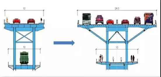 大修后,松浦大橋?qū)⑴f貌換新顏,上層拓寬成雙向6車道,橋面寬24.5米,不再承擔(dān)鐵路交通運(yùn)營(yíng)的下層,也將作為慢行交通過江專用通道。