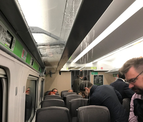 首先,由于空調(diào)問題,車廂里頭發(fā)了洪災(zāi)……部分旅客無奈只能離開座位。