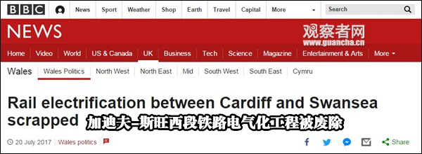 據(jù)BBC報道,7月的時候,工程將卡迪夫(威爾士首府)和斯旺西段的電氣化取消了,紀嘉林給出的理由是:按照現(xiàn)在的限速,不用電氣化跑完這段路用的時間也是一樣的。