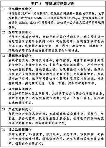 統(tǒng)籌城市發(fā)展的物質(zhì)資源、信息資源和智力資源利用,推動物聯(lián)網(wǎng)、云計算、大數(shù)據(jù)等新一代信息技術(shù)創(chuàng)新應用,實現(xiàn)與城市經(jīng)濟社會發(fā)展深度融合。強化信息網(wǎng)絡、數(shù)據(jù)中心等信息基礎設施建設。促進跨部門、跨行業(yè)、跨地區(qū)的政務信息共享和業(yè)務協(xié)同,強化信息資源社會化開發(fā)利用,推廣智慧化信息應用和新型信息服務,促進城市規(guī)劃管理信息化、基礎設施智能化、公共服務便捷化、產(chǎn)業(yè)發(fā)展現(xiàn)代化、社會治理精細化。增強城市要害信息系統(tǒng)和關鍵信息資源的安全保障能力。