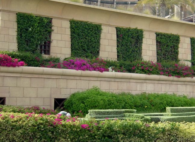 分隔帶綠化的主要功能是按不同的行駛方向分隔車道,防止車燈眩光干擾,減輕對(duì)開車輛接近時(shí)司機(jī)心理上的危險(xiǎn)感,或因行車而引起的精神疲勞,引導(dǎo)視線和改善環(huán)境。中央分隔帶的設(shè)計(jì),在增強(qiáng)交通功能并能夠持久穩(wěn)定方面,要求考慮通過常綠灌木實(shí)現(xiàn),選擇時(shí)應(yīng)重點(diǎn)考慮選用耐尾氣污染、生長(zhǎng)健壯、慢生和耐修剪的灌木品種,一般可選用石楠、金葉女貞、紅花繼木、蜀檜柏、冬青等。在一些地段的分隔帶設(shè)計(jì)中,還可以組團(tuán)式規(guī)則種植棕櫚、櫻花、西府海棠等特色小喬木來體現(xiàn)植物景觀的差異性。
