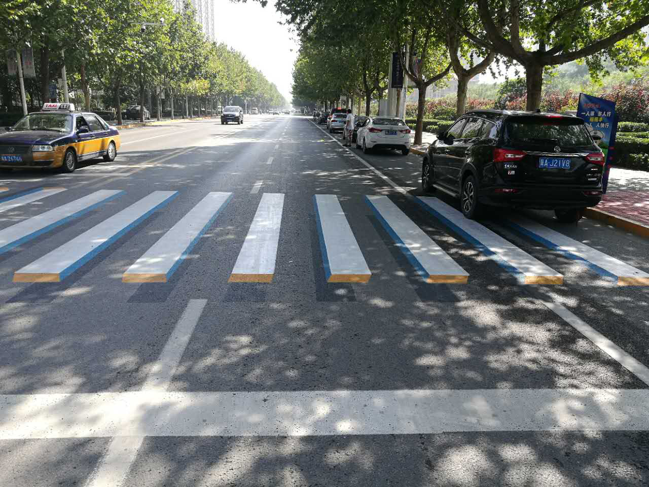 沒錯,不是你眼花了,這是石家莊城區(qū)首次規(guī)劃的3D立體斑馬線,以前只看過3D電影,玩過3D游戲,3D斑馬線還是頭一次見。石家莊的首條3D斑馬線亮相塔南路(建華大街-翟營南大街)南王學(xué)校門口,3D斑馬線由黃白藍三色組成,立體感十足,給普通的白色斑馬線加上“陰影”的理念,使斑馬線“站”起來,給交通參與者帶來不小的視覺沖擊。不少司機以為遭遇了“路障”,在很遠的地方就下意識地減速、剎車。