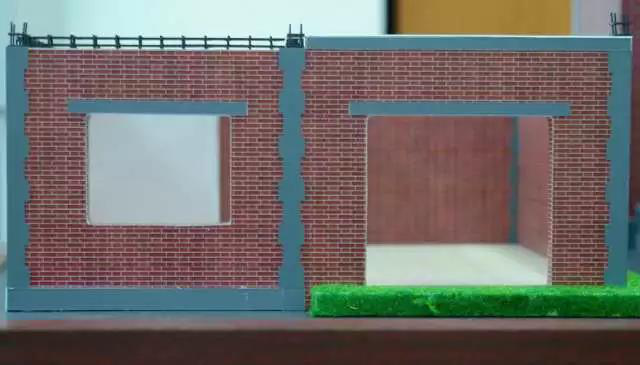 (2)設(shè)構(gòu)造柱,設(shè)計合理截面間距,其豎向配筋按抗震計算確定,下部錨固于頂層圈梁中,上部與壓頂圈梁整連,構(gòu)造柱間距不得超過4m。