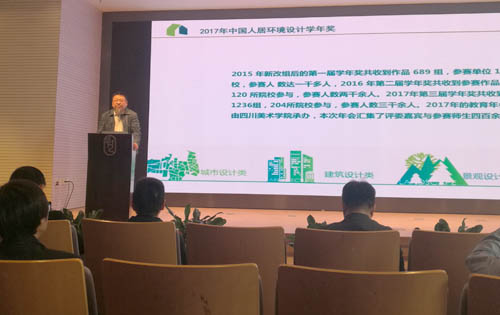 發(fā)布會伊始,中國人居環(huán)境設(shè)計學(xué)年獎王曉風(fēng)老師回顧了2017年中國人居環(huán)境設(shè)計學(xué)年獎相關(guān)情況,據(jù)王曉風(fēng)老師介紹,上屆學(xué)年獎共收到報名作品1236作品件,參與院校204所。其中城市設(shè)計113件,建設(shè)設(shè)計227件,景觀設(shè)計436件,室內(nèi)設(shè)計460件,入圍作品134件,參展作品134件,參與人數(shù)達(dá)3000余人,2017中國人居環(huán)境設(shè)計學(xué)年獎取得了圓滿成功。