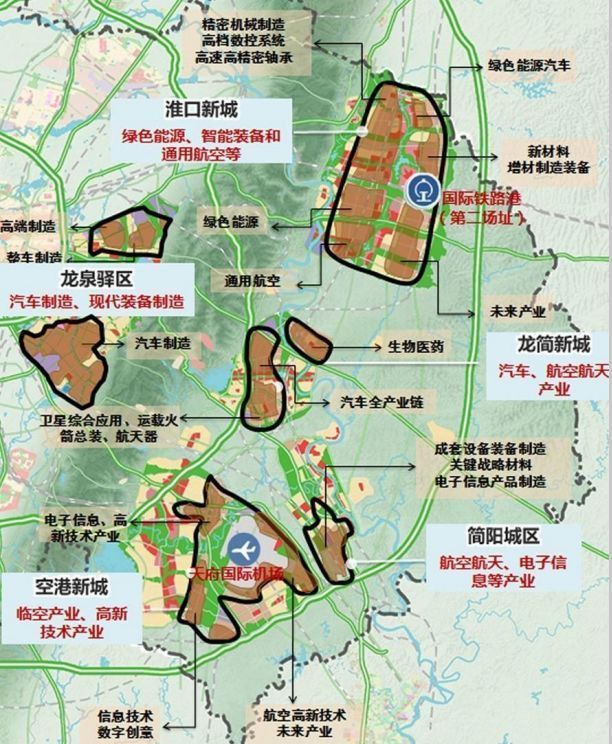 簡陽新城:航空航天、電子信息等產(chǎn)業(yè),包含成套設(shè)備裝備制造、關(guān)鍵戰(zhàn)略材料、電子信息產(chǎn)品制造等