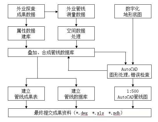管線圖編繪工作完成后,提交的計(jì)算機(jī)數(shù)據(jù)文件包括mdb格式和dwg格式的數(shù)據(jù)文件各一份。