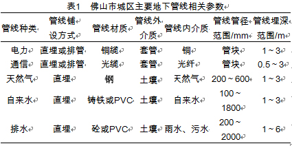 當今,城市的地下埋藏著無數(shù)的地下管線,是城市運轉(zhuǎn)的命脈組成部分而且隨著城市的不斷發(fā)展,其埋設環(huán)境的復雜度日益提升,導致地下管線探測難度的直線上升。以佛山市中心城區(qū)為例,其各條主干道均鋪設有電力、通信、天然氣、自來水、排水等各類生活配套管線。隨著市區(qū)房地產(chǎn)項目的開發(fā),道路上鋪設的管線數(shù)量越來越多、管線的管徑越來越大、管線的走向也越來越復雜,對城市管線探測提出了更高的要求,特別是近年來非金屬材質(zhì)管線的鋪設為管線探測帶來了新的難題,見表1。