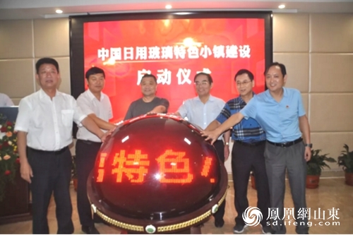 (與會領導共同觸摸顯示球,宣布日用玻璃特色小鎮(zhèn)建設啟動)