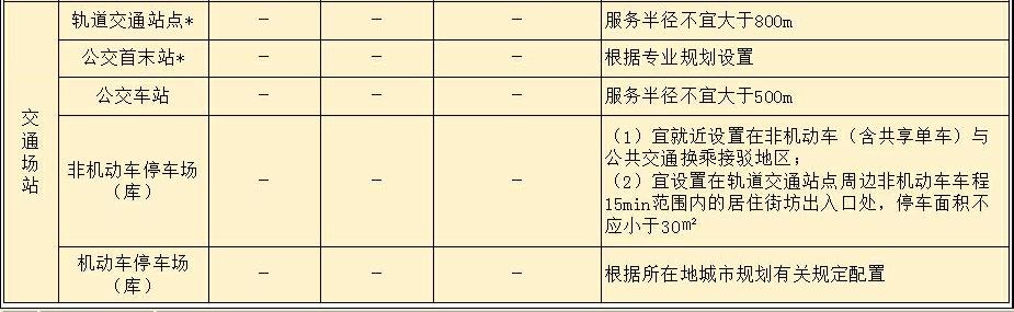 注:1 加*的配套設(shè)施,其建筑面積與用地面積規(guī)模應(yīng)滿足國家相關(guān)規(guī)劃和建設(shè)標(biāo)準(zhǔn)的有關(guān)規(guī)定;