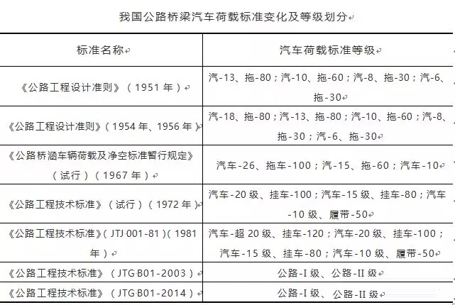 我國(guó)公路橋梁汽車荷載標(biāo)準(zhǔn)變化及等級(jí)劃分