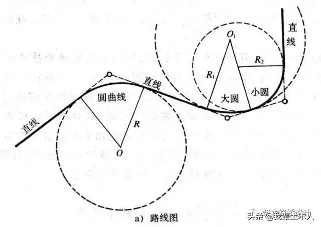 現(xiàn)代道路平面線形正是由上述三種基本線形構成的,稱為平面線形三要素。