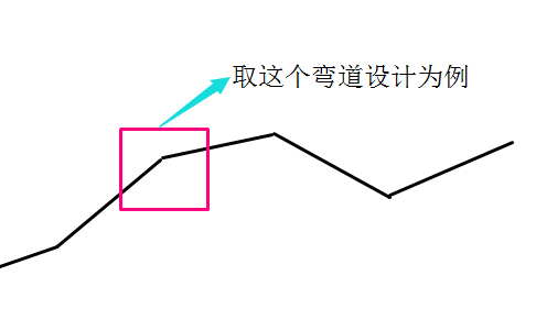 白線是大致走向,然后進(jìn)行平曲線設(shè)計(jì)(就是具體定下這個(gè)彎怎么過(guò),比如我們經(jīng)過(guò)計(jì)算定出了紅線)一般的路是拐來(lái)拐去的,比如: