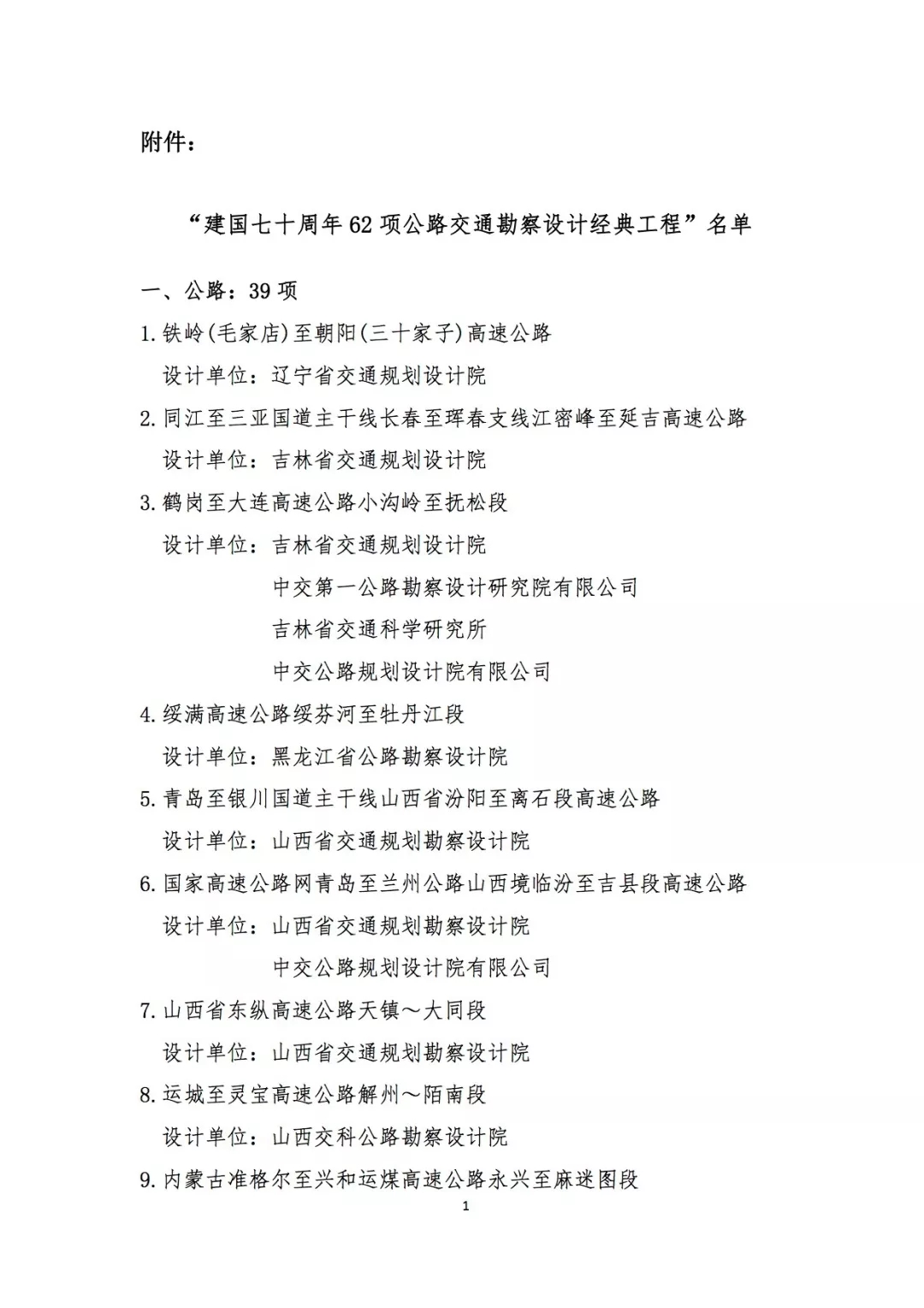 中國公路勘察設(shè)計協(xié)會表彰62項“建國七十周年公路交通勘察設(shè)計經(jīng)典工程”