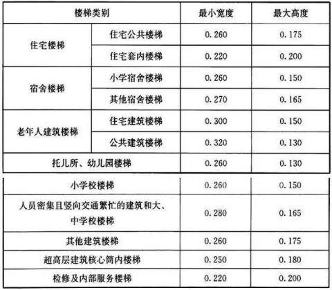 表6.8.10樓梯踏步最小寬度和最大高度(m)