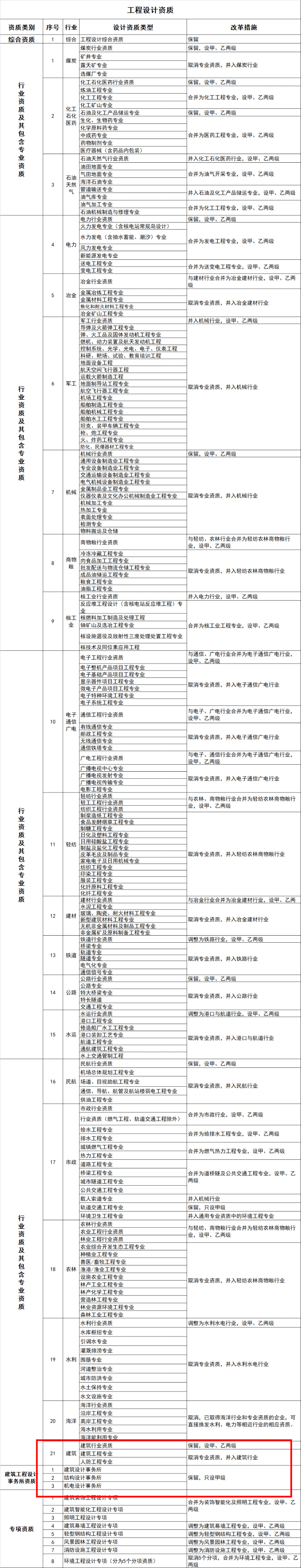 2、工程設(shè)計(jì)資質(zhì)。保留綜合資質(zhì)。對(duì)部分行業(yè)資質(zhì)進(jìn)行整合。