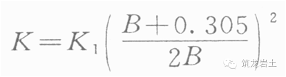 式中 K1——是0.305m寬標(biāo)準(zhǔn)荷載板的標(biāo)準(zhǔn)基床系數(shù)或K30值。