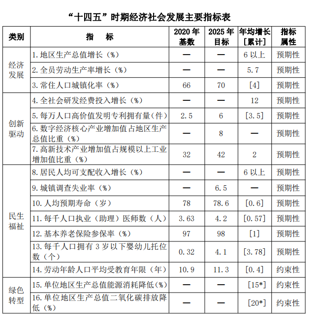 ——經(jīng)濟(jì)質(zhì)量效益顯著提升。京津冀協(xié)同創(chuàng)新共同體建設(shè) 縱深推進(jìn),高質(zhì)量發(fā)展體系更加完善,科技進(jìn)步貢獻(xiàn)率明顯上 升,產(chǎn)業(yè)基礎(chǔ)高級化、產(chǎn)業(yè)鏈現(xiàn)代化水平大幅提升,農(nóng)業(yè)基礎(chǔ) 更加穩(wěn)固,實體經(jīng)濟(jì)、先進(jìn)制造業(yè)、數(shù)字經(jīng)濟(jì)加快發(fā)展,現(xiàn)代 服務(wù)業(yè)高質(zhì)量提升。綜合經(jīng)濟(jì)實力和政府財力再上新臺階,全市生產(chǎn)總值、一般公共預(yù)算收入年均增長分別達(dá)到 6%以上、 10.6%,總量分別達(dá)到 8000 億元、1000 億元,省會首位度進(jìn)一 步彰顯,區(qū)域中心城市輻射帶動能力和城鄉(xiāng)區(qū)域發(fā)展協(xié)調(diào)性明 顯增強(qiáng)。