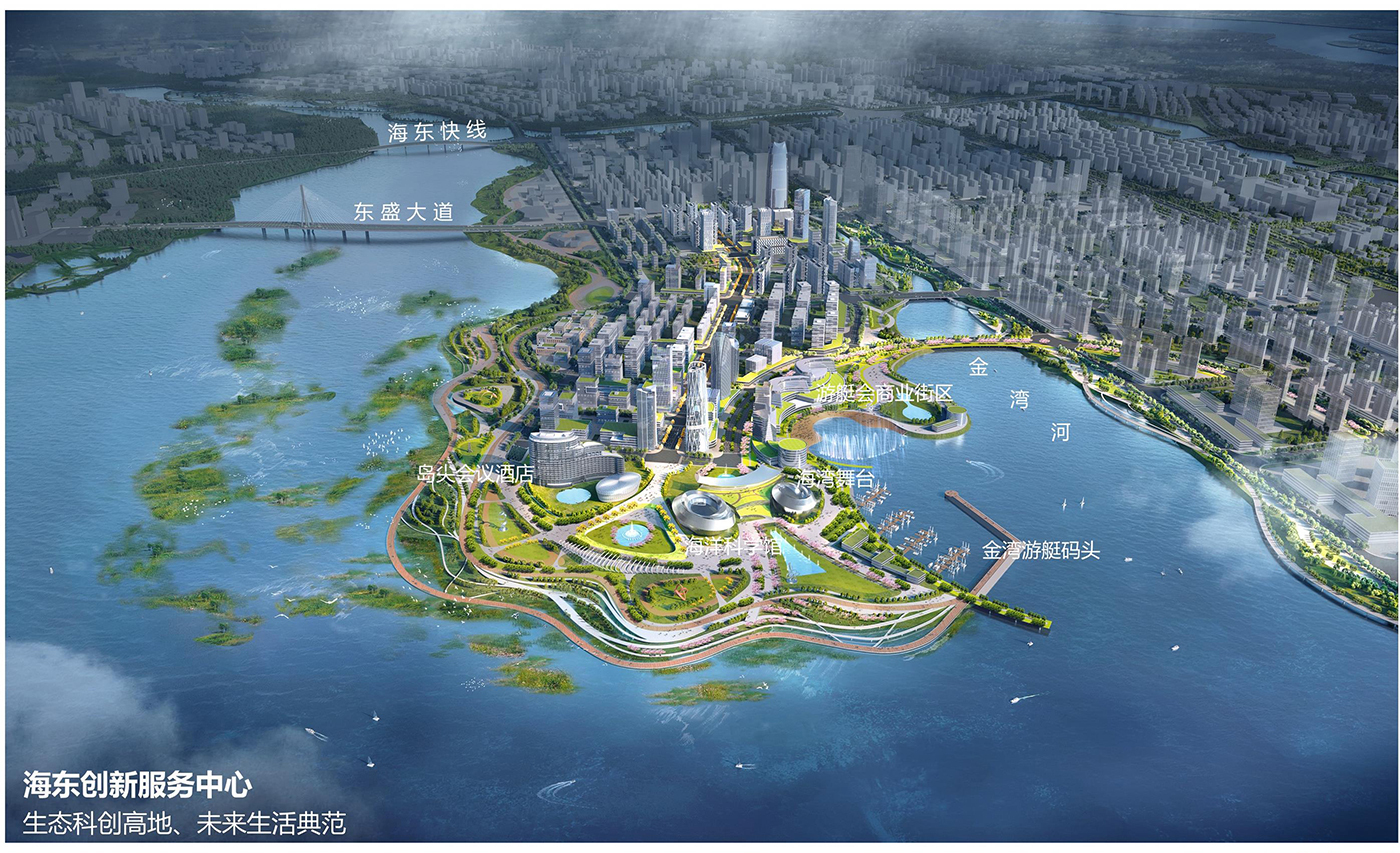 打造海東新區(qū)的生態(tài)創(chuàng)新高地,樹立一灣兩岸創(chuàng)新生活典范。延續(xù)歷版規(guī)劃中的生態(tài)內(nèi)灣,同時(shí)將生態(tài)岸線延伸至北岸,形成龍王灣環(huán)島濕地公園。濱海一線實(shí)施低強(qiáng)度開發(fā),內(nèi)陸開發(fā)強(qiáng)度梯度式提升,將商娛、科普功能融入濱海濕地公園,提升濱海活力。