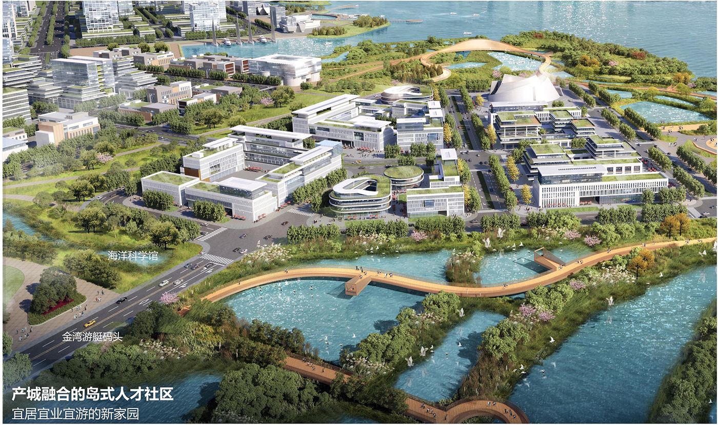 打造湛江藍(lán)色產(chǎn)業(yè)戰(zhàn)略基地,建設(shè)產(chǎn)城融合的島式人才社區(qū)。構(gòu)建生態(tài)廊道貫穿島嶼,由島嶼中心向?yàn)I海放射滲透,城市與生態(tài)共生共融,共同勾勒未來生態(tài)的島式生活??傮w控制低強(qiáng)度、低密度開發(fā),整體以中低強(qiáng)度,中高密度的產(chǎn)業(yè)園區(qū)為主,引入人才公寓、信息科技園、雙碳體驗(yàn)中心等配套設(shè)施,提供混合高效的多元空間載體。生態(tài)產(chǎn)業(yè)片區(qū)整體中低強(qiáng)度開發(fā),面向龍王灣局部區(qū)域布置高層塔樓,環(huán)沙咀頭差異化打造西岸、南岸兩類產(chǎn)業(yè)展示面。