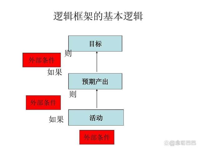 邏輯框架,說簡單點就是做項目的邏輯關(guān)系。我們做任何事情或者活動,都需要投入,如果投入活動,外部條件具備,那么就會有產(chǎn)出成果。如果有產(chǎn)出成果,那么在條件具備的情況下,那么就可以實現(xiàn)具體目標(biāo)或者目的。如果一個個具體目標(biāo)實現(xiàn)了,那么宏觀目標(biāo)就有可能實現(xiàn)了。