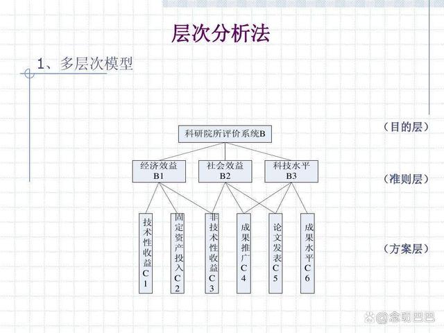 當(dāng)我們面對一個問題進(jìn)行決策時,首先要分析解決這個問題的各個決定因素,并把他們梳理,建立成一定的層次結(jié)構(gòu)體系。也就是需要將決策的目標(biāo),考慮的因素和決策對象分為目標(biāo)層,準(zhǔn)則層和方案層,通過層次分析,決定方案的決策次序。