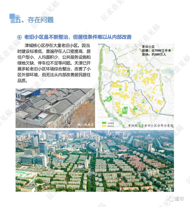 征求意見稿中,明確了目前城市發(fā)展的優(yōu)勢,也干脆利落的支出存在的六大亟待解決的發(fā)展問題。一是,人口結構和分布不合理,市中心活力不足。二是,教育資源分布不均衡,造成城區(qū)交通擁堵。三是,存量土地資源豐富,但價值潛力尚未體現(xiàn)。四是,軌道交通客流低,地鐵與綜合開發(fā)建設的匹配度有待提升。五是,小汽車增速快,道路堵、停車難。六是,老舊小區(qū)雖不斷整治,但居住條件難以從內部改善。