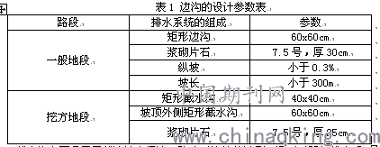 路基的地面排水主要是采取設(shè)置貫通全線的邊溝來進行的,邊溝的設(shè)計參數(shù)如下表1所示。