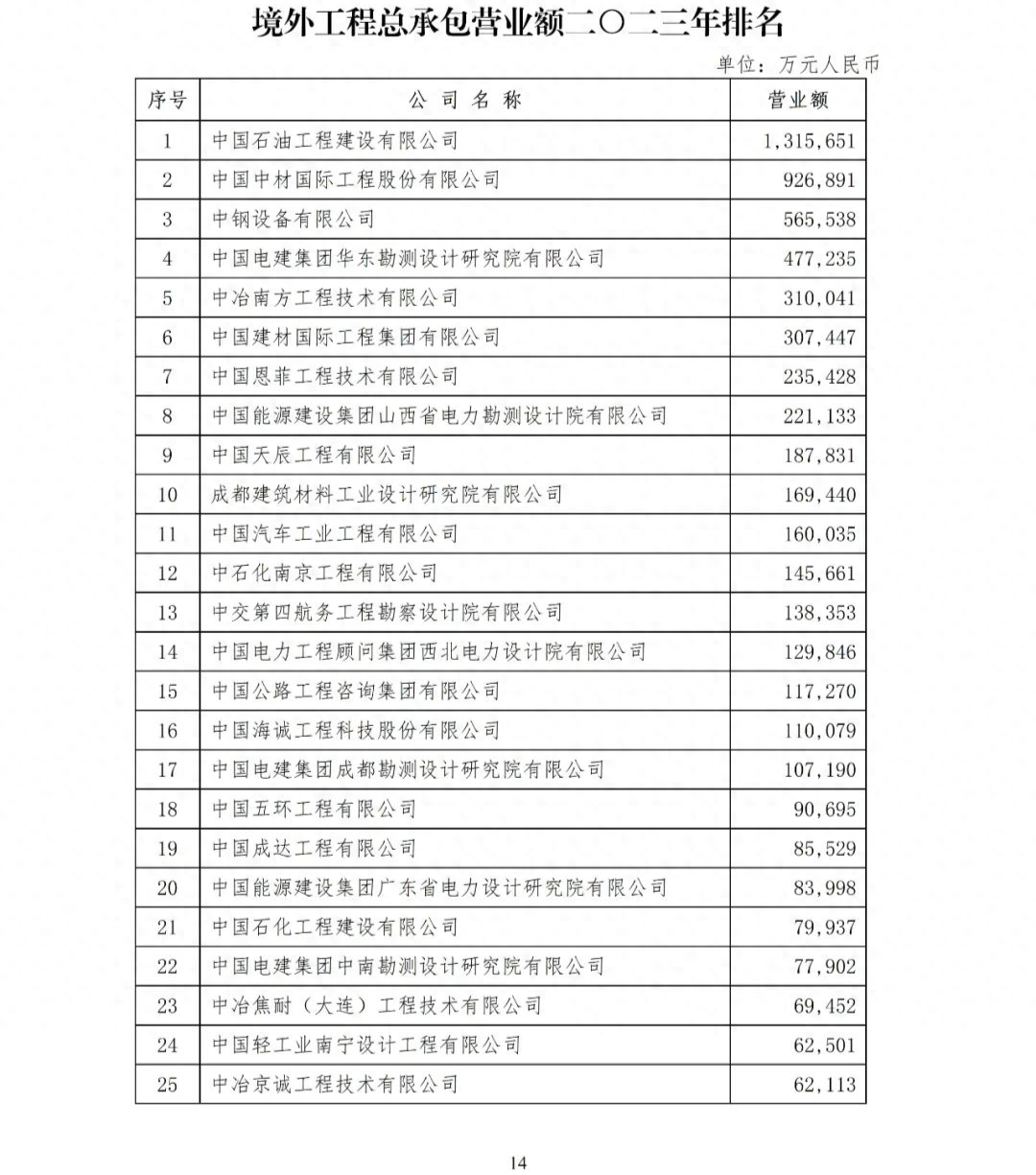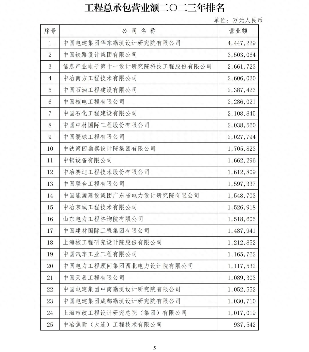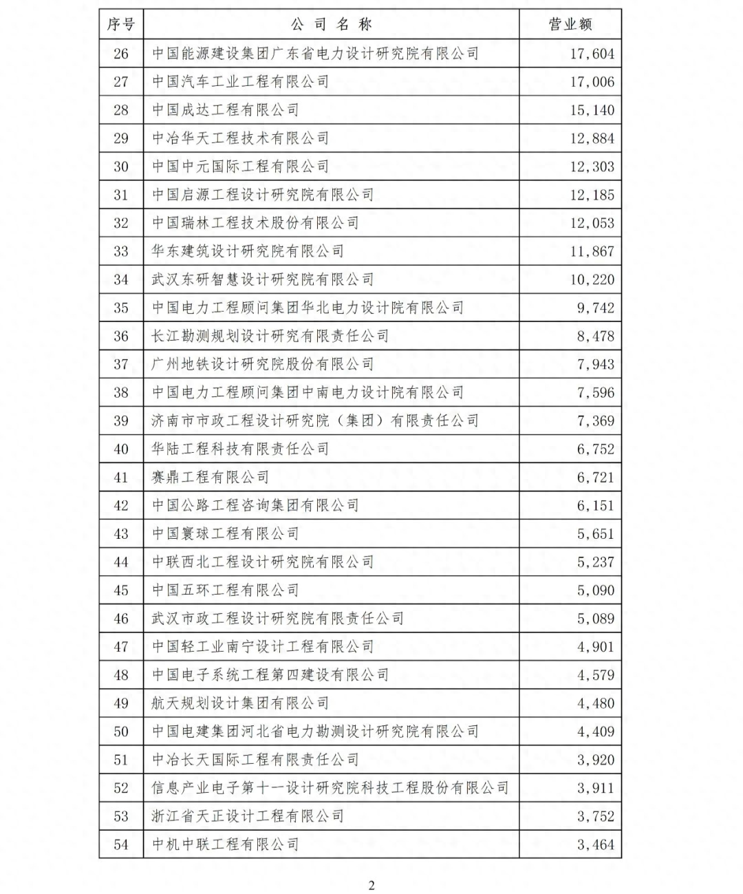 2.工程總承包營(yíng)業(yè)額二〇二三年排名