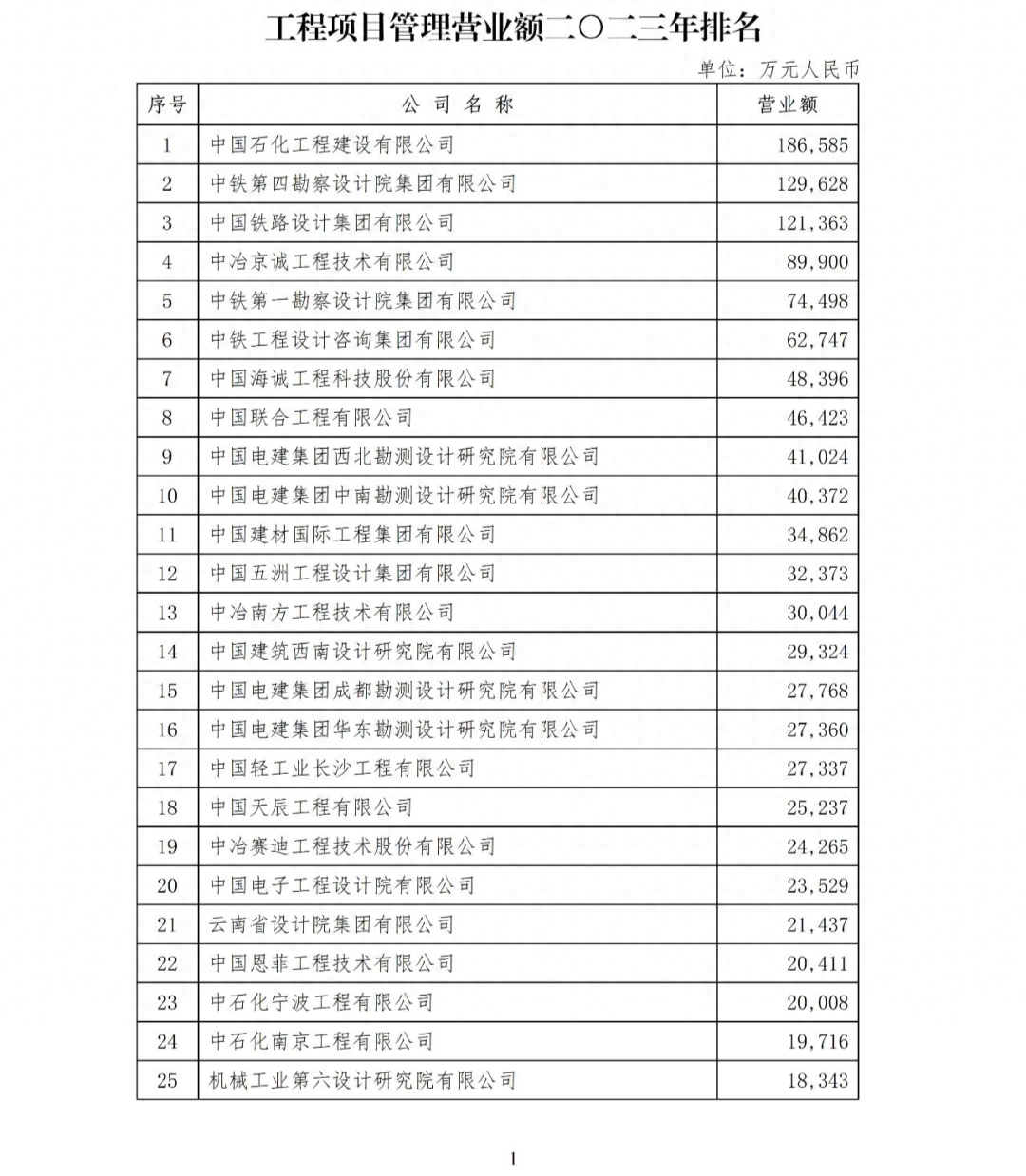 1.工程項(xiàng)目管理營(yíng)業(yè)額二〇二三年排名