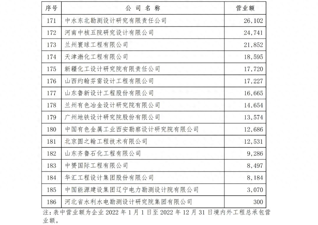 關(guān)于公布勘察設(shè)計(jì)企業(yè)工程項(xiàng)目管理和工程總承包營(yíng)業(yè)額二〇二三年排名的通知