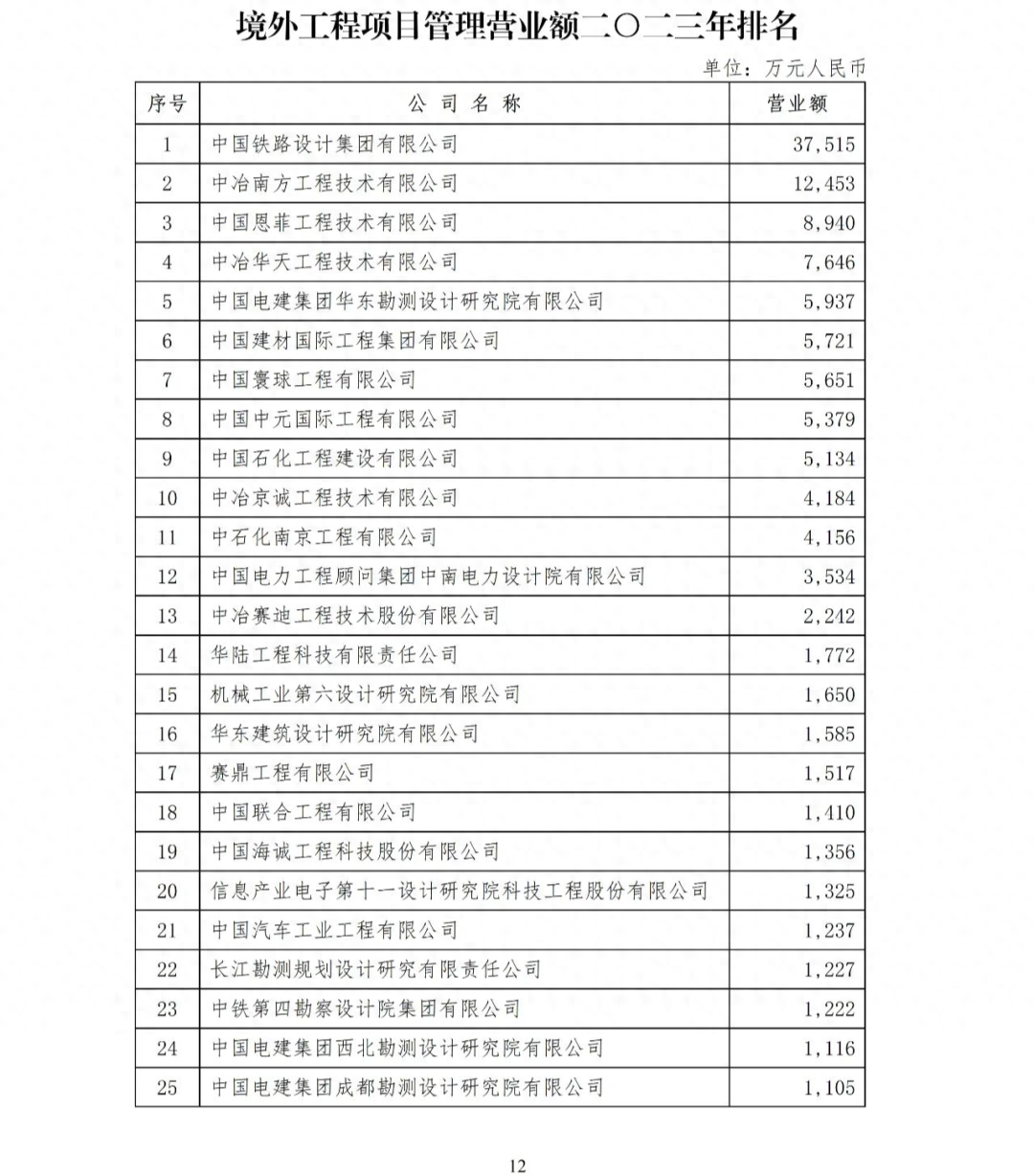 3.境外工程項(xiàng)目管理營(yíng)業(yè)額二〇二三年排名