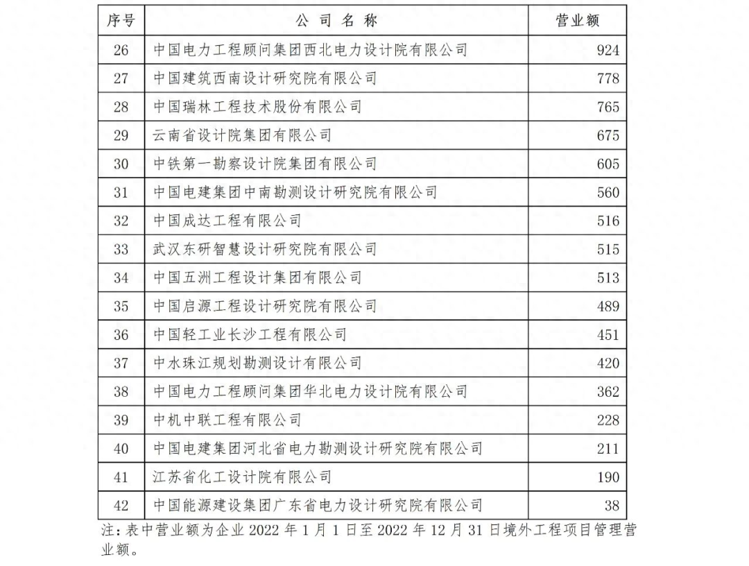 勘察設(shè)計(jì)企業(yè)工程項(xiàng)目管理和工程總承包營(yíng)業(yè)額2023年排名出爐