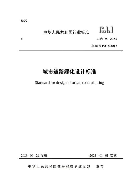 近日,住房和城鄉(xiāng)建設(shè)部批準(zhǔn)和正式公布了由中國城市規(guī)劃設(shè)計研究院主持修編的行業(yè)標(biāo)準(zhǔn)《城市道路綠化設(shè)計標(biāo)準(zhǔn)》(編號CJJ/T75-2023),該標(biāo)準(zhǔn)將于2024年1月1日實施。
