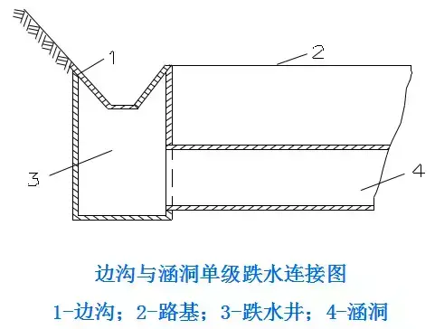 4.跌水與急流槽:跌水與急流槽是路基地面排水溝渠的特殊形, 用于陡坡地段,溝底縱坡可達45度。在陡坡或深溝地段設置的溝底為階梯,水流呈瀑布式跌落的溝槽稱作跌水。跌水的作用是在較短的距離內(nèi),降低水流流速,消減水流能量,進而防止沖刷(用于坡度大于10%,水頭高差大于1.0m的陡坡地段)