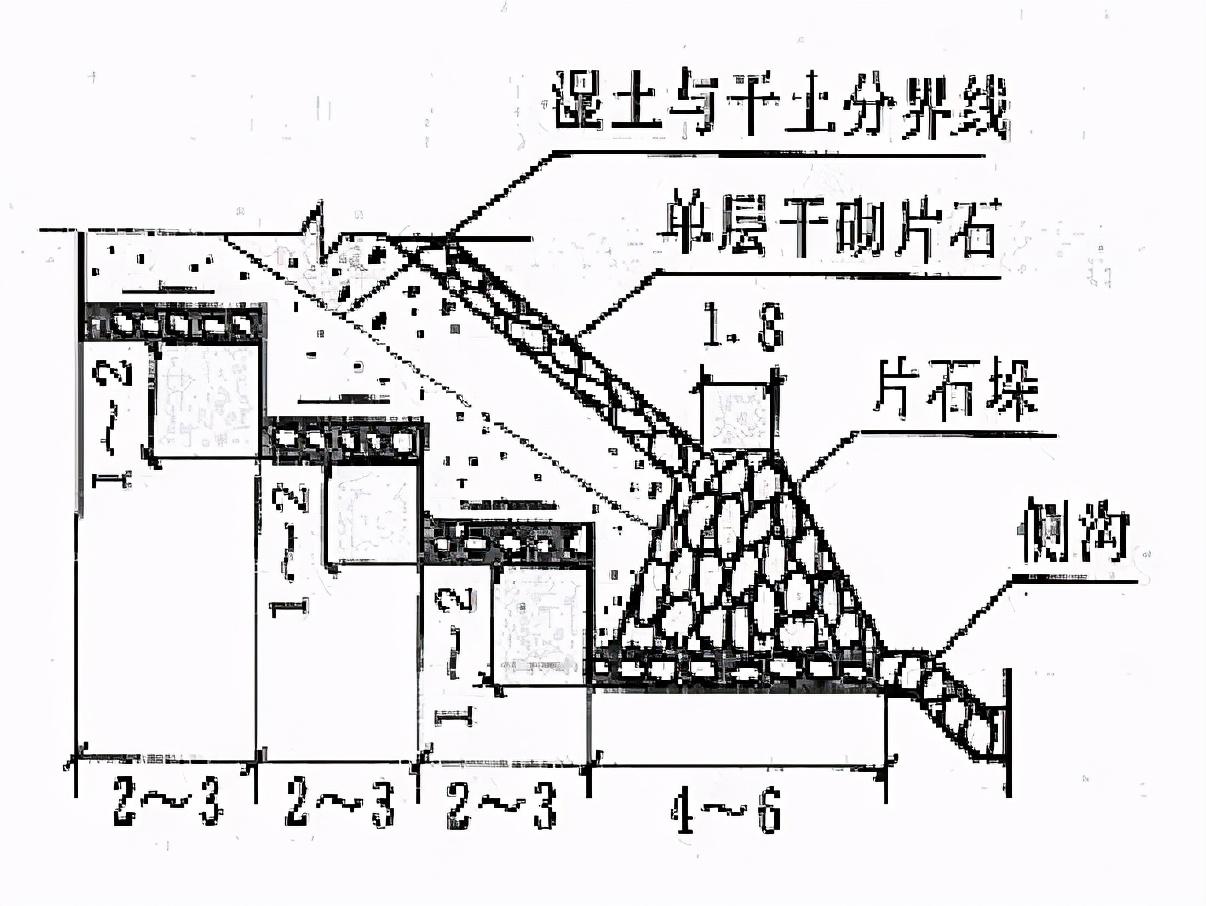 - 防滲的方法:表層夯拍,三合土、四合土捶面,漿砌片石護(hù)面及用混凝土水槽等,對(duì)于采用卵石護(hù)面或干砌片石護(hù)面的水溝,也可在其底層用粘土夯鋪一層厚0.2~0.3m的土層;