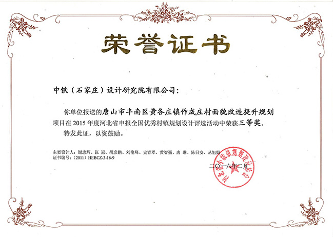 該項(xiàng)目于2015年12月榮獲由河北小城鎮(zhèn)規(guī)劃建設(shè)協(xié)會(huì)頒發(fā)的規(guī)劃三等獎(jiǎng)。